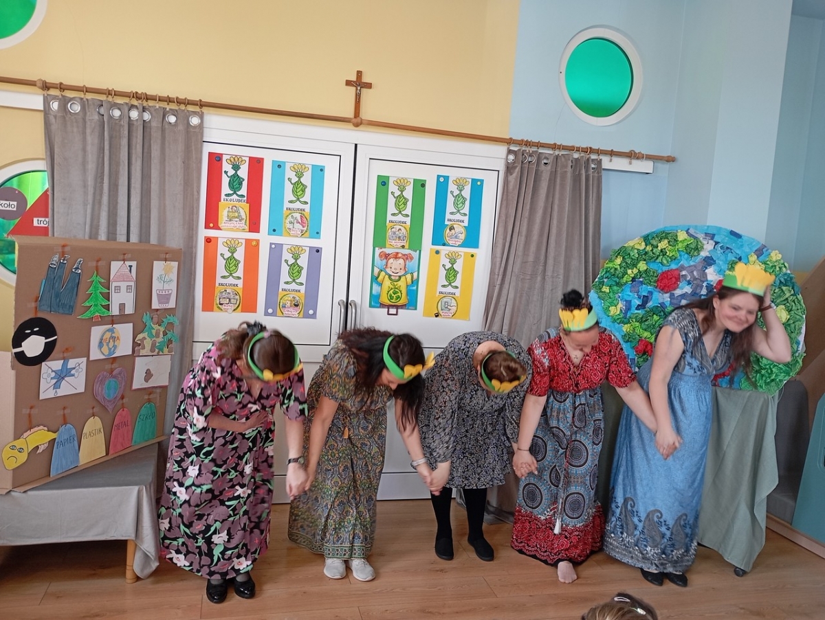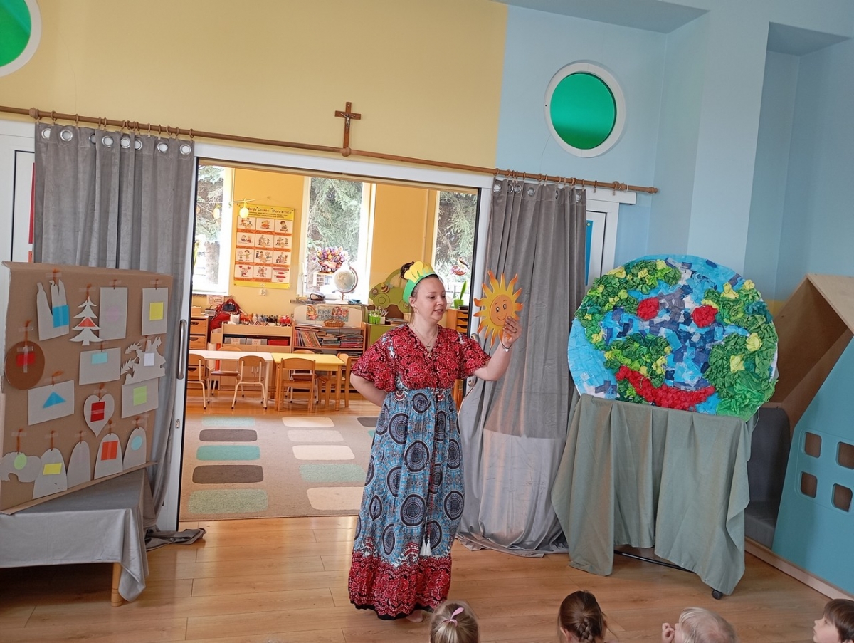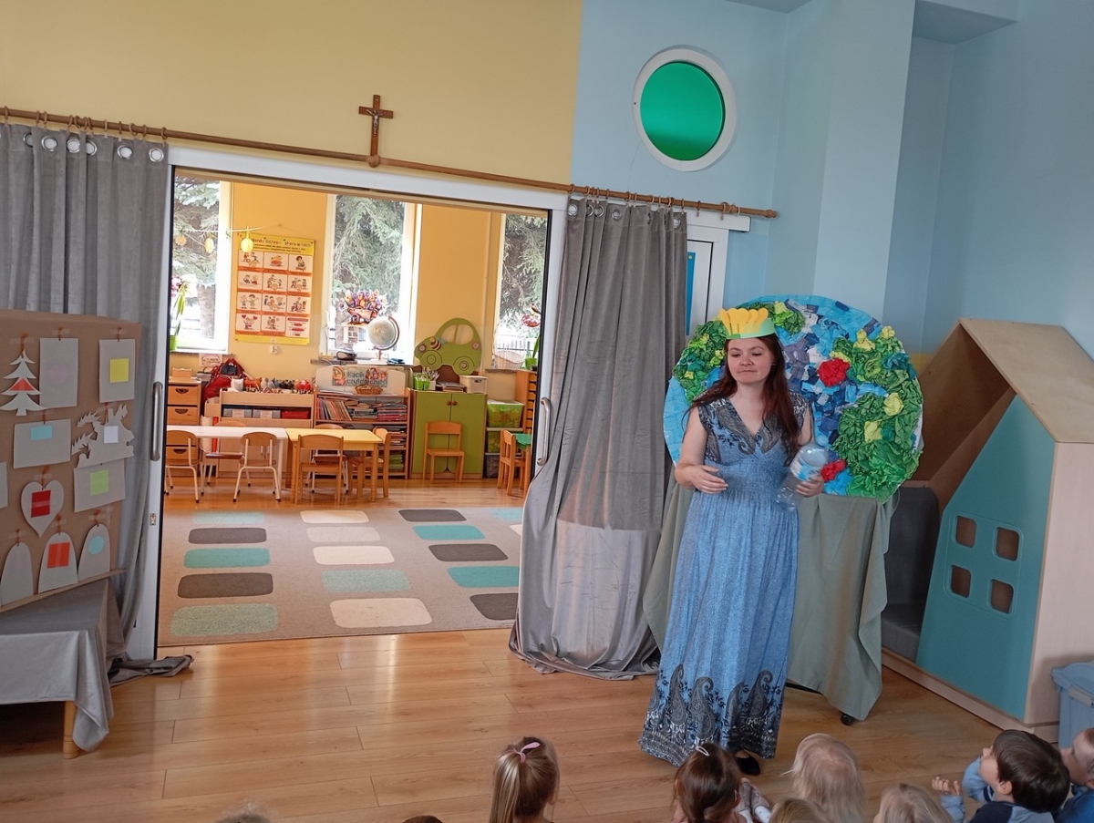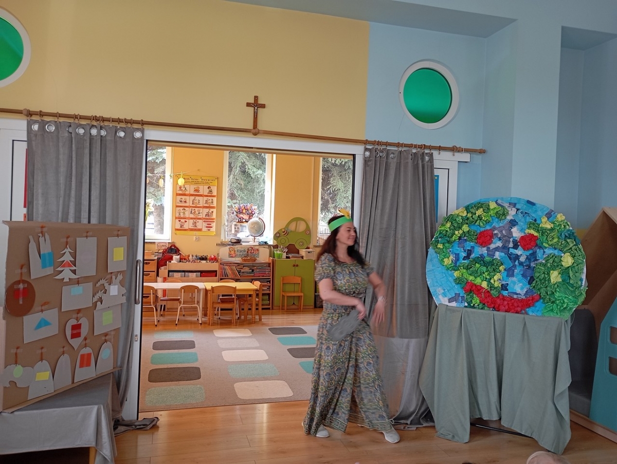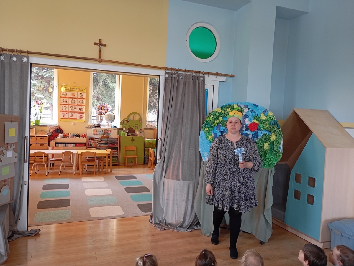 Dziś obchodziliśmy Międzynarodowy Dzień Teatru i zgodnie z naszą tradycją, odbył się występ artystyczny w wykonaniu Wychowawców Oddziałów Przedszkolnych pt. " Opowieść o Ekoludkach". Spektakl teatralny opowiadał o dzielnych Ekoludkach, które przybyły na Ziemię, by uczyć dzieci troski o planetę Ziemię. Widownia pięknie doceniła trud aktorów i wykazała się wiedzą na temat ekologii.