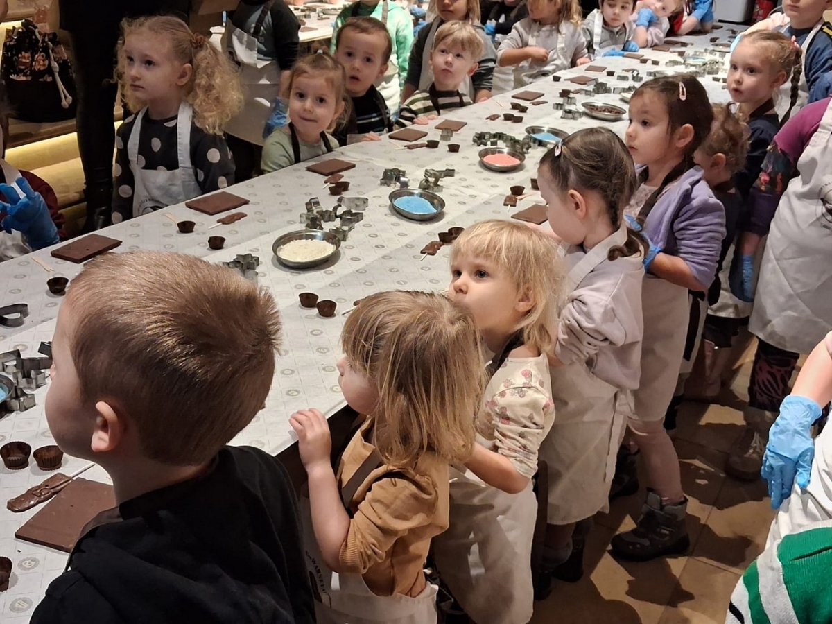 W naszym przedszkolu odbyła się wycieczka do manufaktury czekolady. Dzieci miały okazję poznać proces powstawania czekolady – od ziaren kakaowca aż po gotowe słodkości. Podczas spotkania przedszkolaki dowiedziały się wielu ciekawostek na temat produkcji czekolady oraz pracy cukierników.