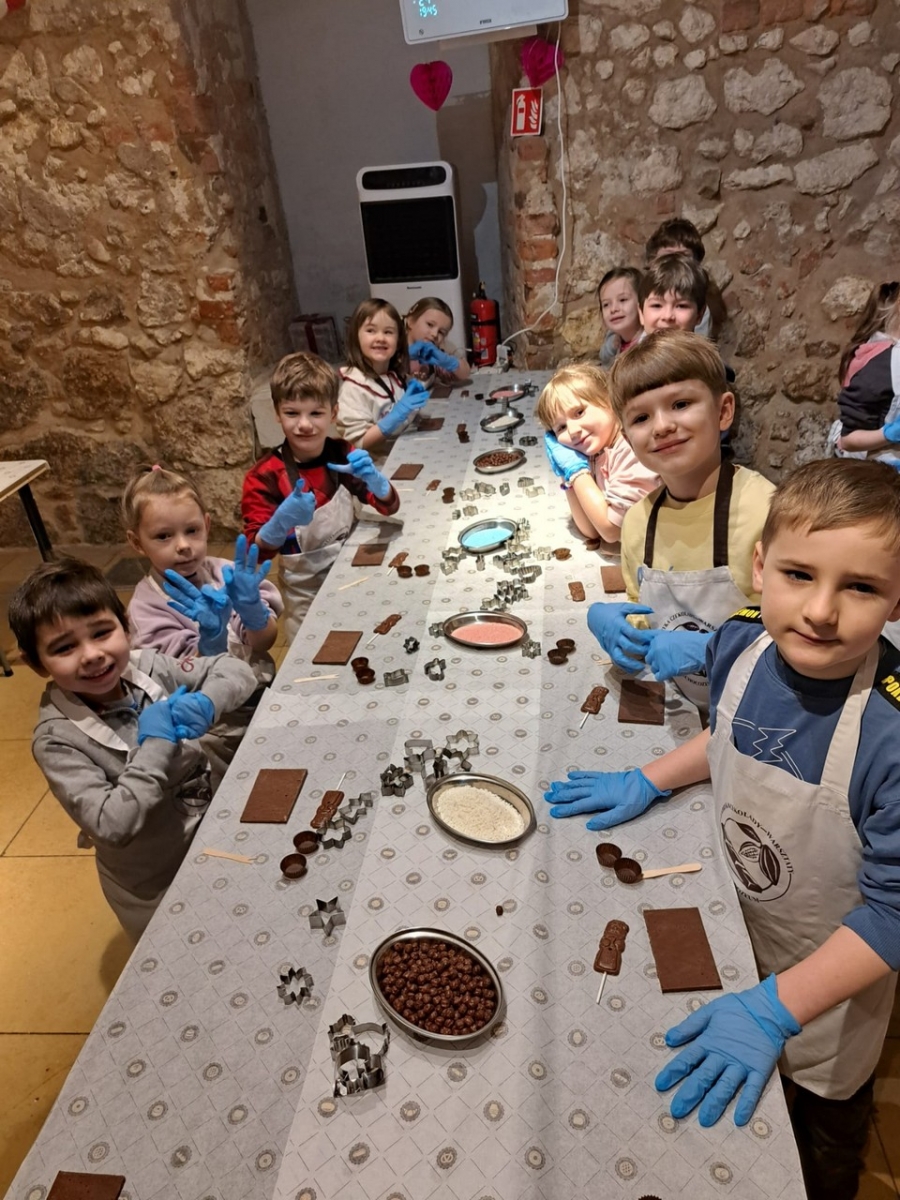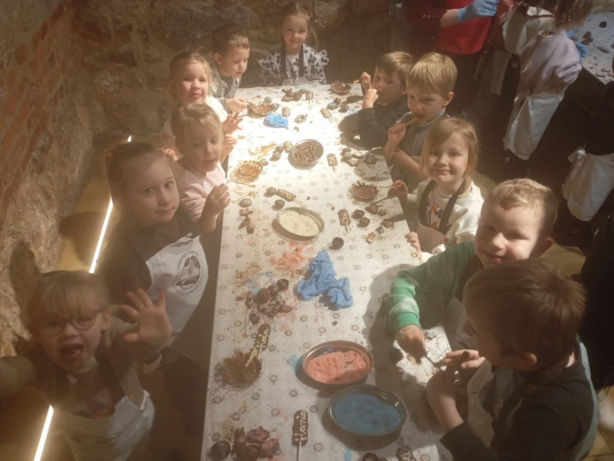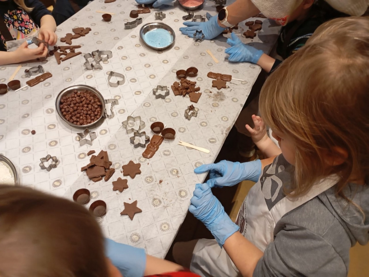 Największą atrakcją były warsztaty, podczas których dzieci samodzielnie przygotowywały i ozdabiały swoje własne czekoladowe przysmaki.
