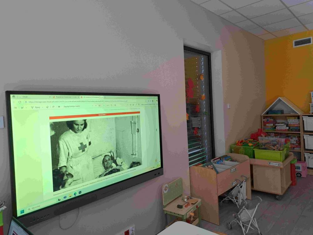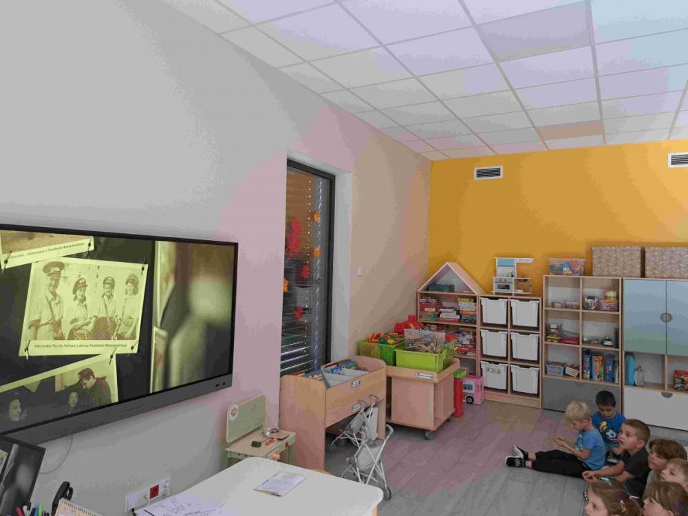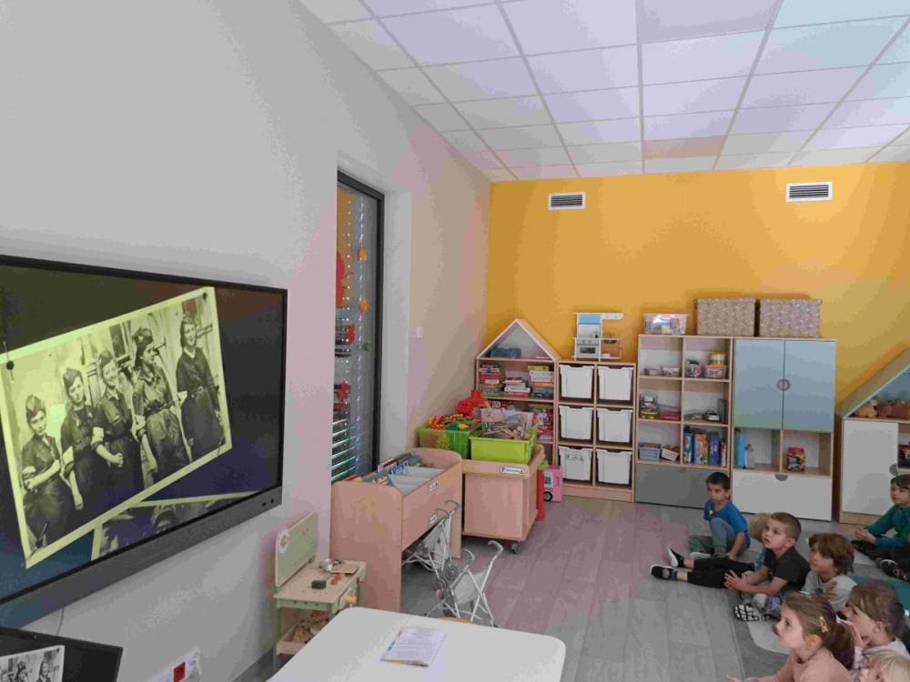 Dzieci z oddziałów przedszkolnych „Tropiciele Bajek” oraz „Mali Odkrywcy” w ramach akcji BohaterOn obejrzały film „Powstańcze dziewczyny – o rolach kobiet w Powstaniu Warszawskim”. Następnie rozmawiały na temat tego, co kobiety robiły podczas powstania ze szczególnym naciskiem na nazwy ich funkcji (sanitariuszka, łączniczka, kucharka) oraz ich wygląd i zadania jakich się podejmowały. Przedszkolaki dopasowywały także do postaci sanitariuszki i łączniczki ich atrybuty oraz pokolorowały, wycięły i ubrały wybraną przez siebie postać.