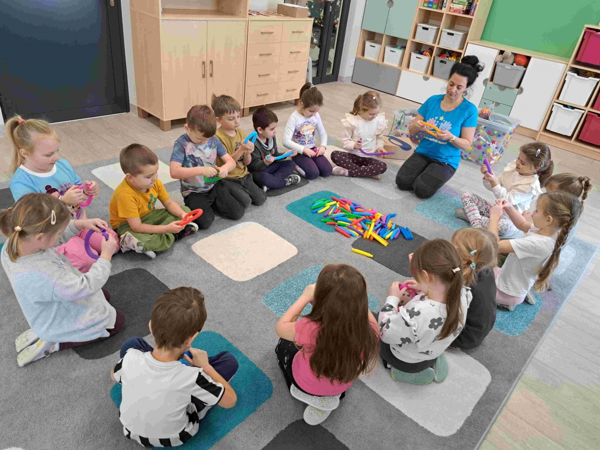 Dzieci z oddziałów przedszkolnych „Tropiciele Bajek” oraz „Mali Odkrywcy” odwiedziła Pani Agnieszka, która zaproponowała przedszkolakom wiele ciekawych zabaw rozwijających zarówno motorykę dużą jak i małą. Na dzieci czekało mnóstwo zabawy z pomponikami, klamerkami, pipetami, szczypczykami, przewlekankami i wieloma innymi ciekawymi pomocami. Przedszkolaki świetnie się bawiły rozwijając swoje umiejętności. Dziękujemy Pani Agnieszce za przeprowadzenie wspaniałych i inspirujących zajęć.