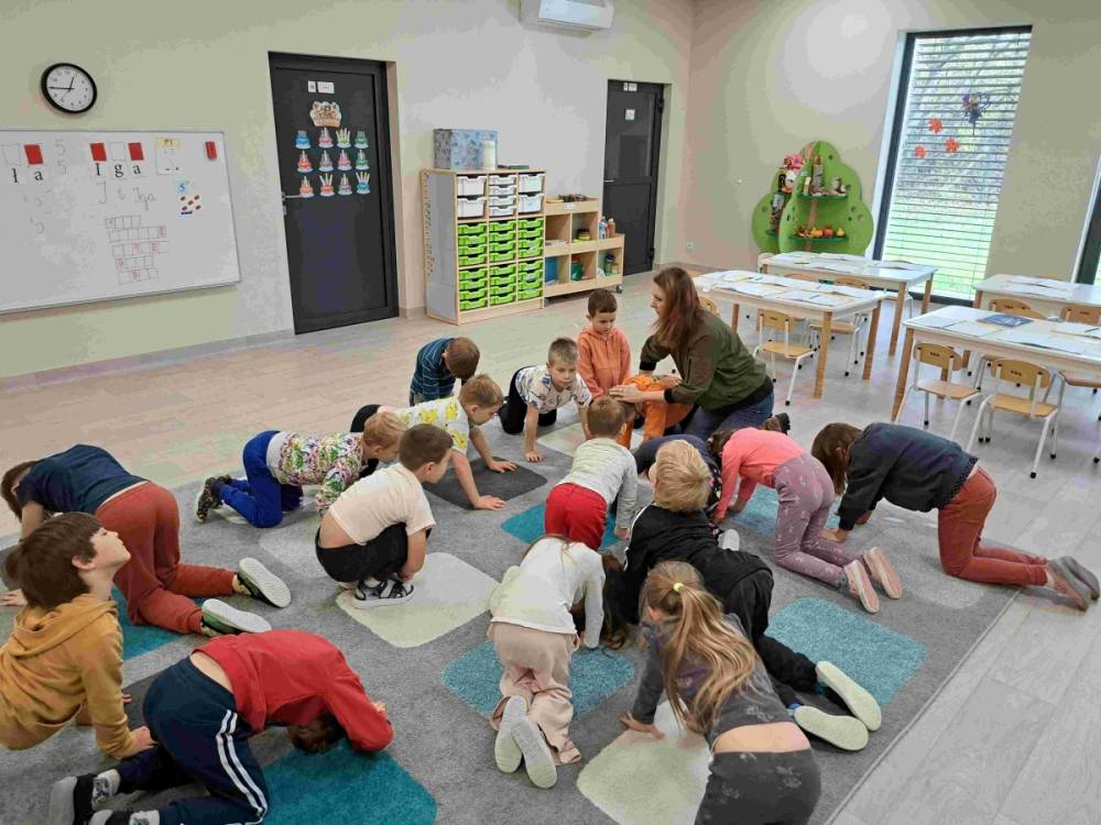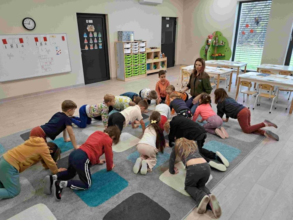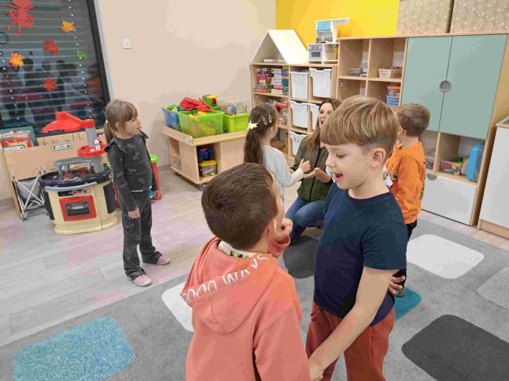 W grupie „Mali Odkrywcy” regularnie odbywają się zajęcia z logopedą szkolnym o nazwie „zajęcia kreatywne”. Na zajęciach wspieramy rozwój mowy, pracujemy nad usprawnianiem aparatu artykulacyjnego, wspieramy koordynację wzrokowo-ruchową oraz dużą motorykę.
