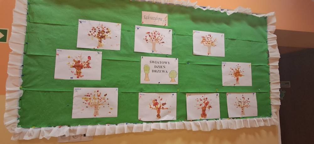 Z okazji Światowego Dnia Drzewa dzieci z grupy Sprytne Żaczki oraz Skrzaty z Kroniki uczestniczyły w zajęciach poświęconych tematyce drzew oraz ich roli w przyrodzie. Podczas zajęć przedszkolaki poznały  budowę drzewa oraz różne gatunki drzew występujące w naszym otoczeniu. Na zakończenie wykonały pracę plastyczną.