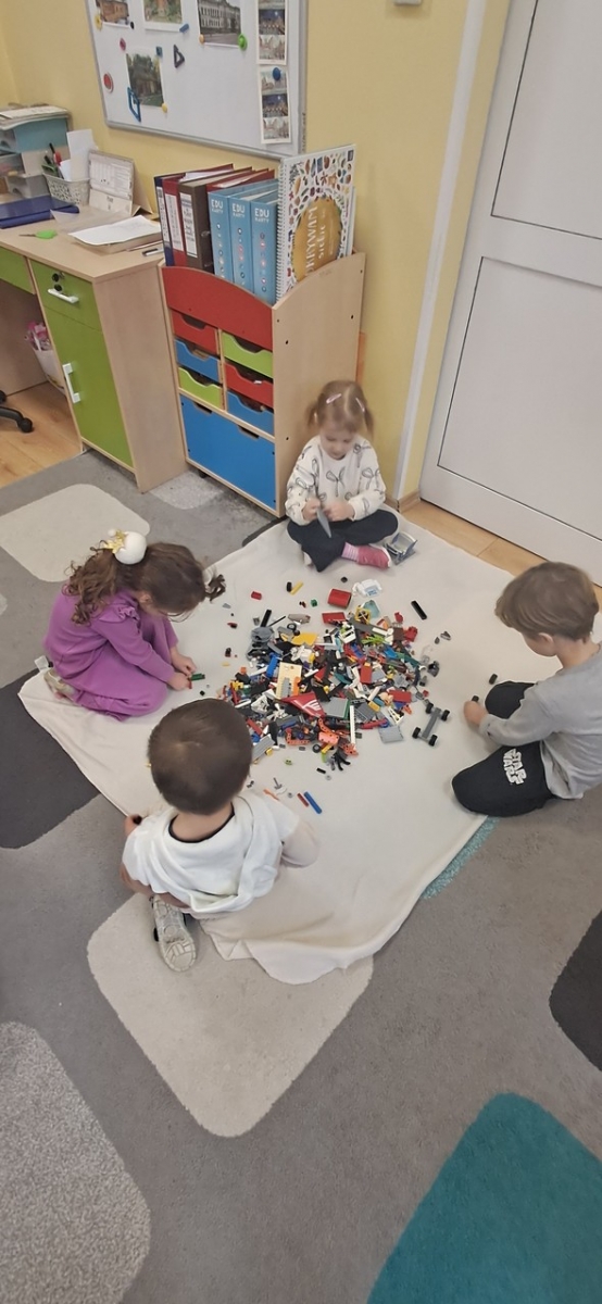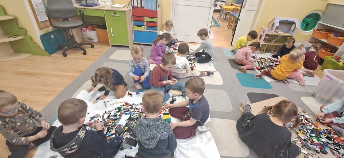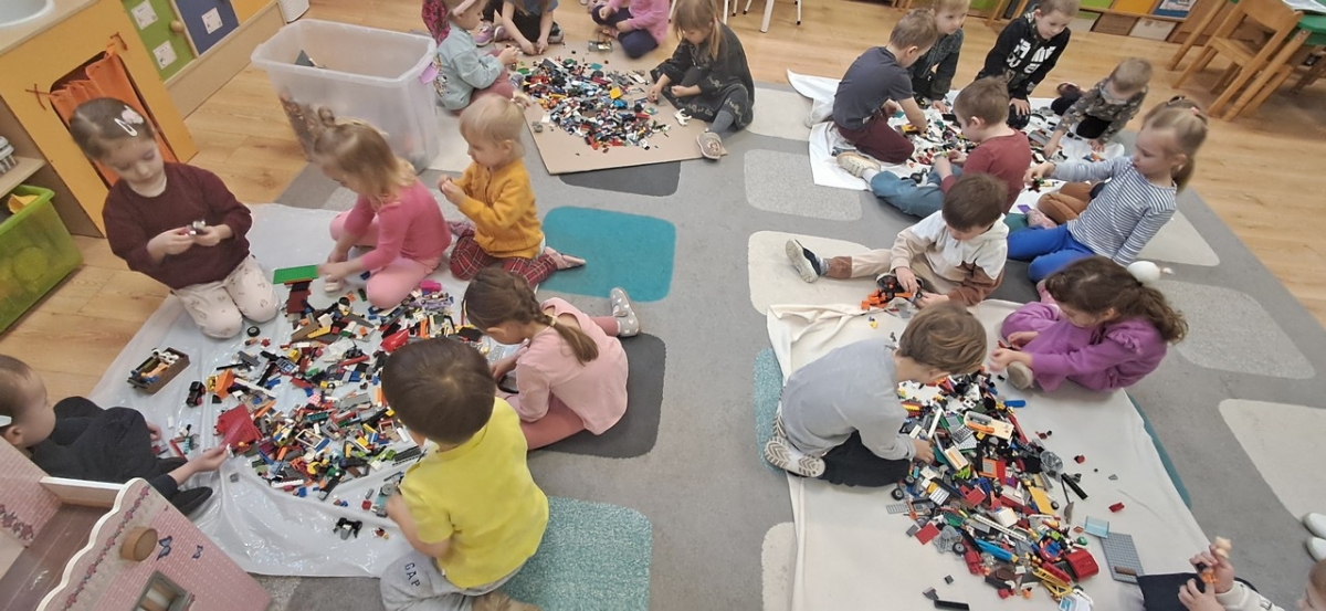 W przedszkolu odbył się Międzynarodowy Dzień Klocków LEGO. Dzieci dowiedziały się, skąd się wzięły klocki LEGO oraz brały udział w radosnych zabawach i aktywnościach tematycznych związanych z tym dniem. Na koniec budowały własne konstrukcje z klocków.