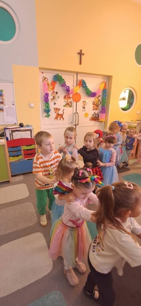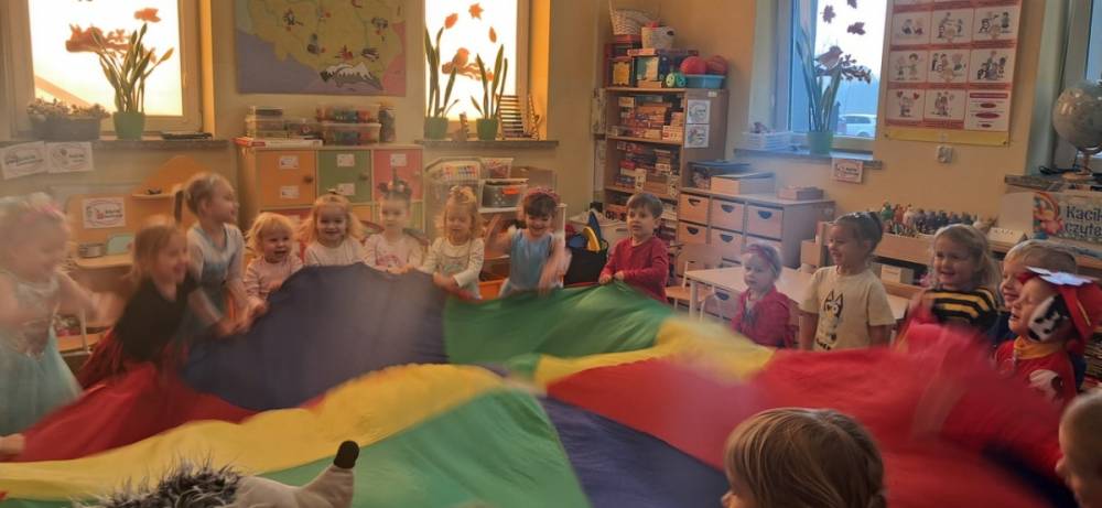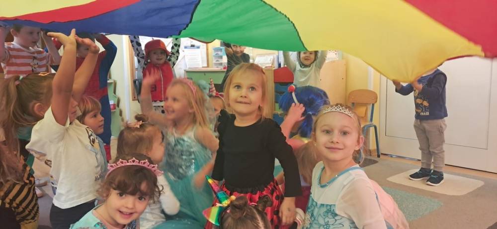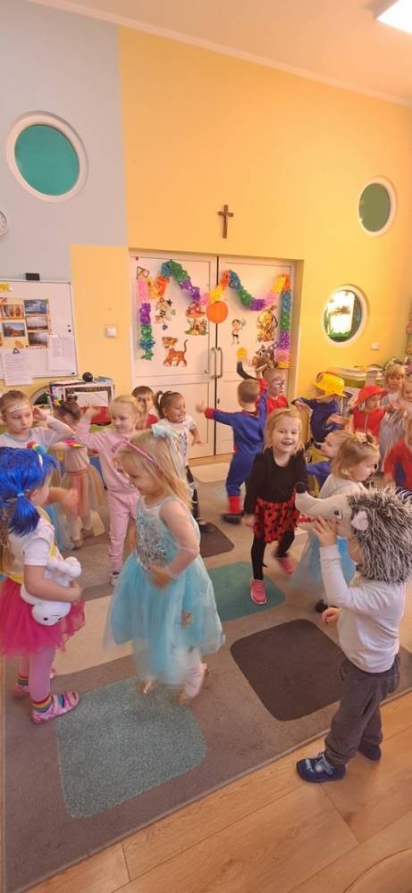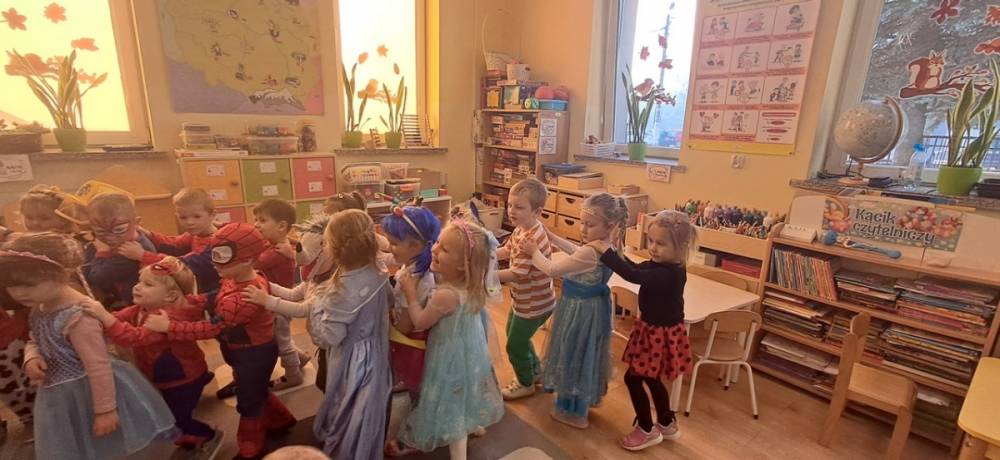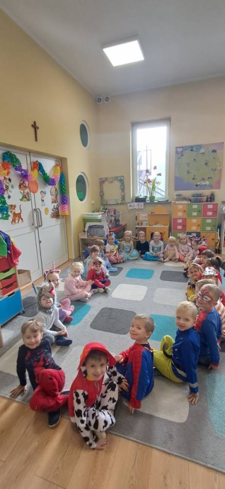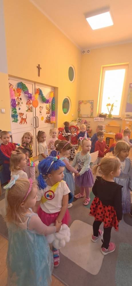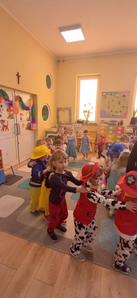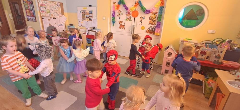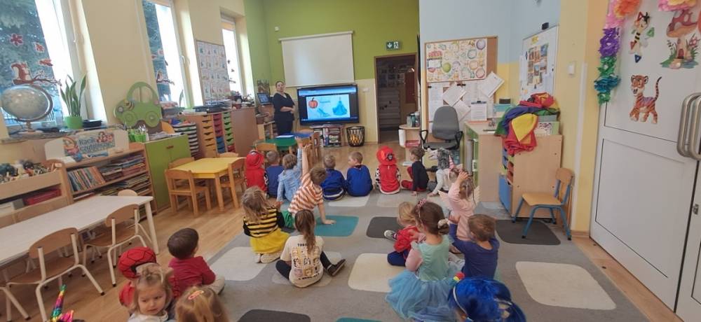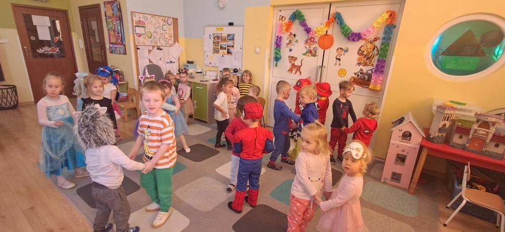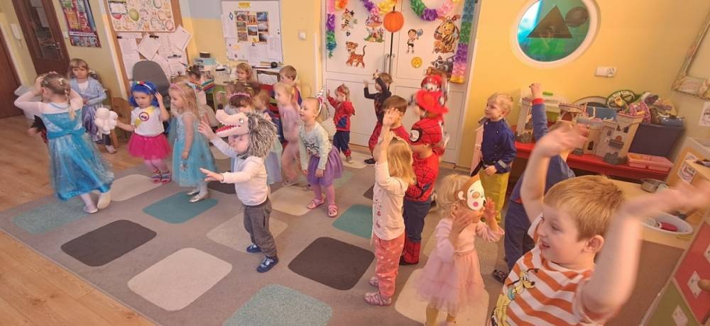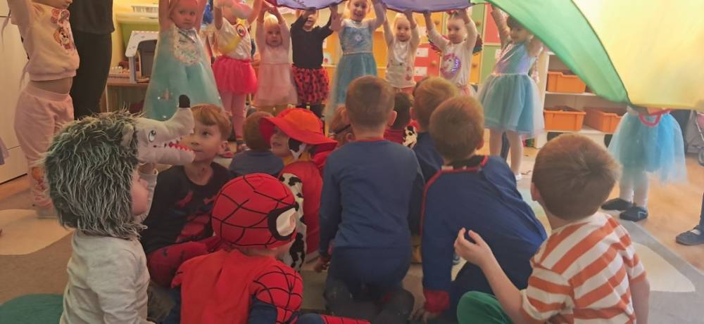W naszym przedszkolu odbył się Dzień Postaci z Bajek! Dzieci przyszły przebrane za swoich ulubionych bohaterów i wzięły udział w wesołych zabawach. Były zagadki bajkowe, tańce, zabawy z chustą animacyjną oraz pokaz strojów na czerwonym dywanie. To był dzień pełen uśmiechu, kolorów i dobrej zabawy!