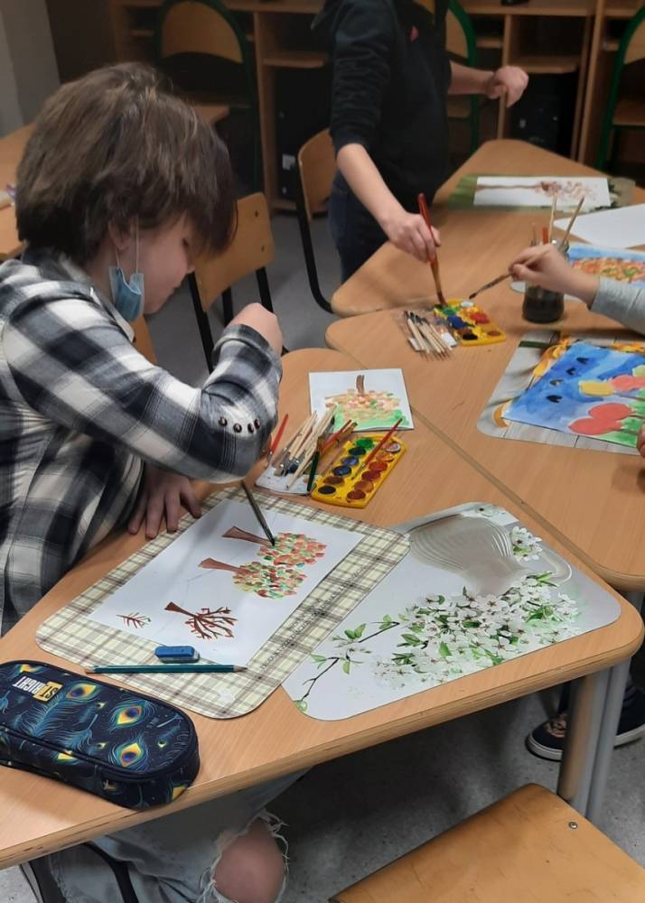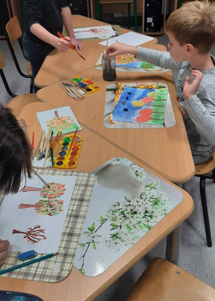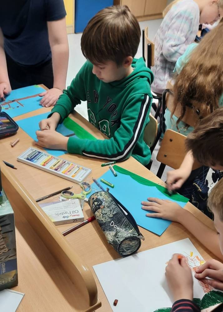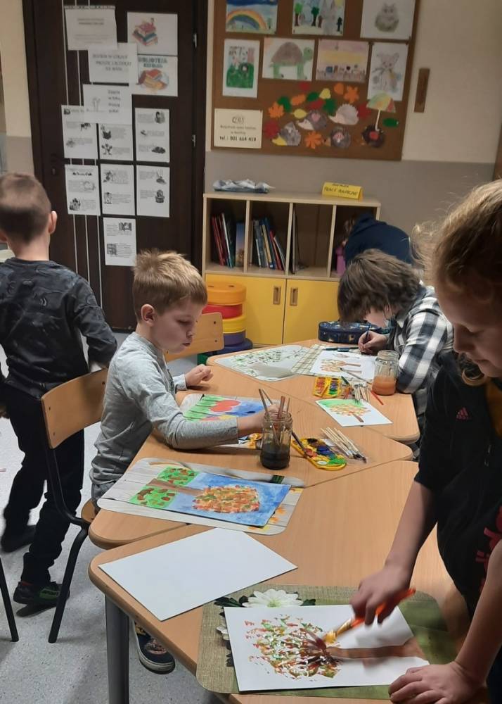 W tym tygodniu wykonujemy prace na świetlicowy konkurs plastyczny „Barwy jesieni”. Swoje dzieła można namalować farbami, pastelami lub kredkami. Aby bardziej wczuć się w klimat jesieni w czasie tworzenia słuchamy utworu Antonio Vivaldiego „Cztery pory roku - Jesień”.