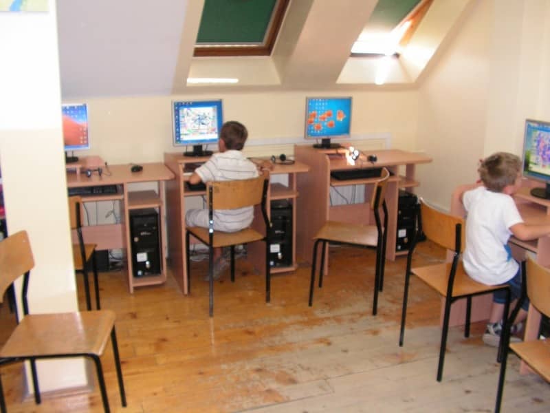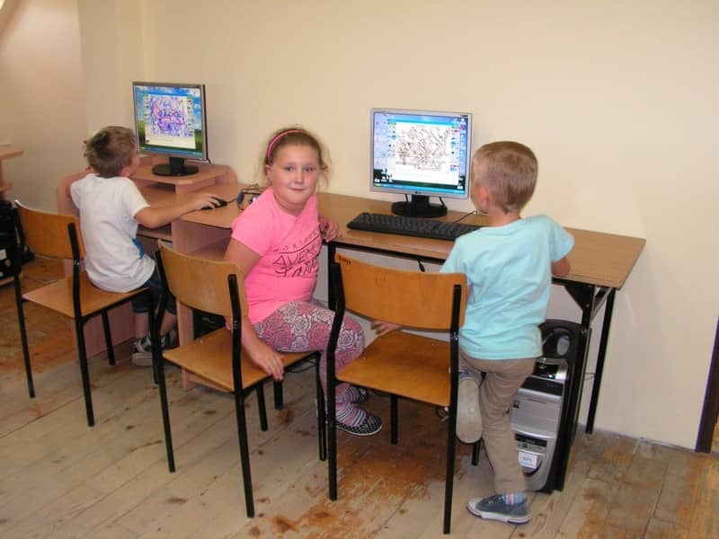 Korzystając w piatek z sali komputerowej uczyli się rysunku w programie Tux Pait.