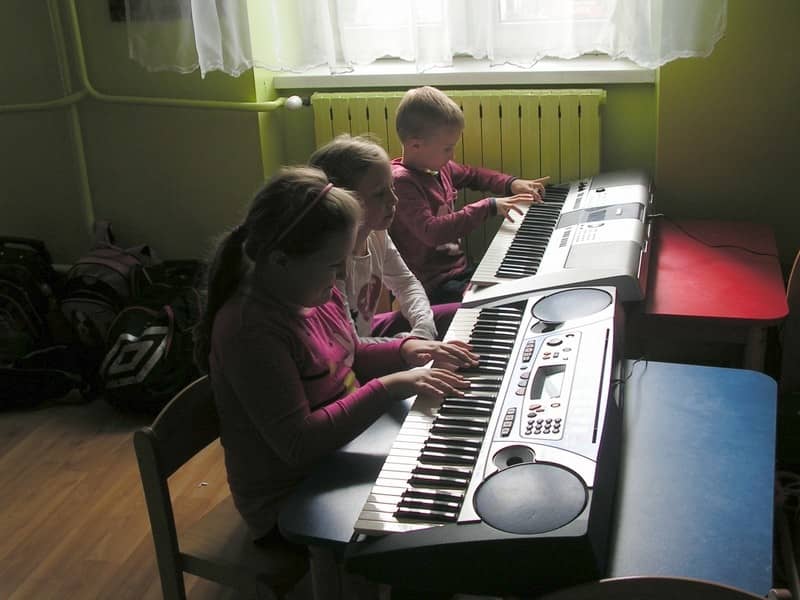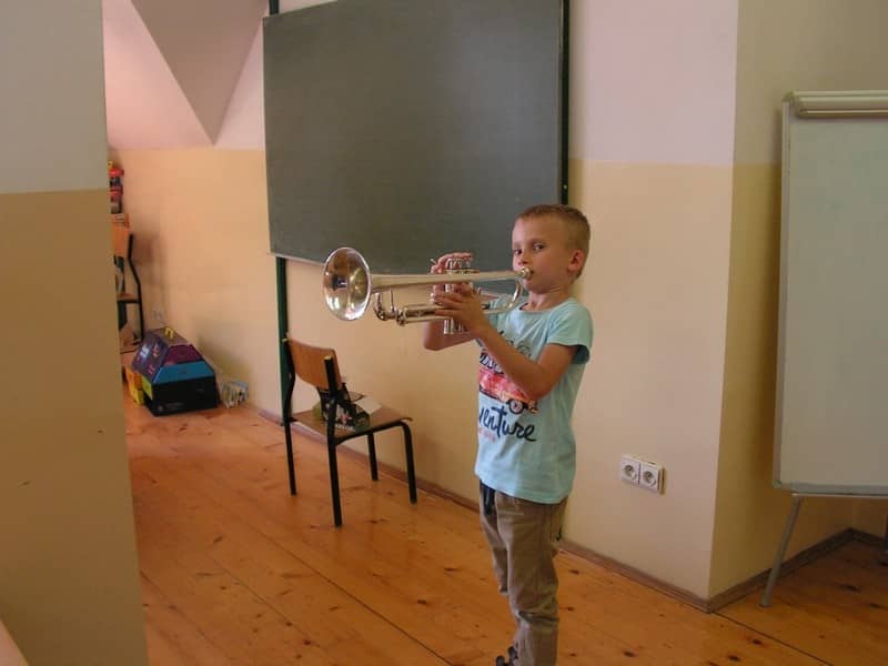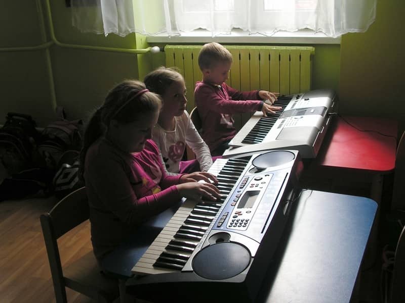 Na zajęciach świetlicowych uczniowie mogli spróbować gry na różnych instrumentach muzycznych: skrzypcach, trąbce, gitarze oraz uczyć się gry na keyboardzie. W perspektywie mamy maukę gry z nut.
