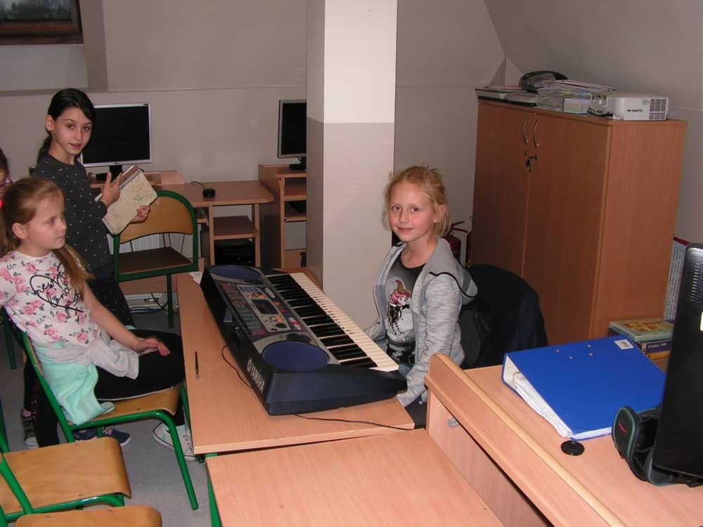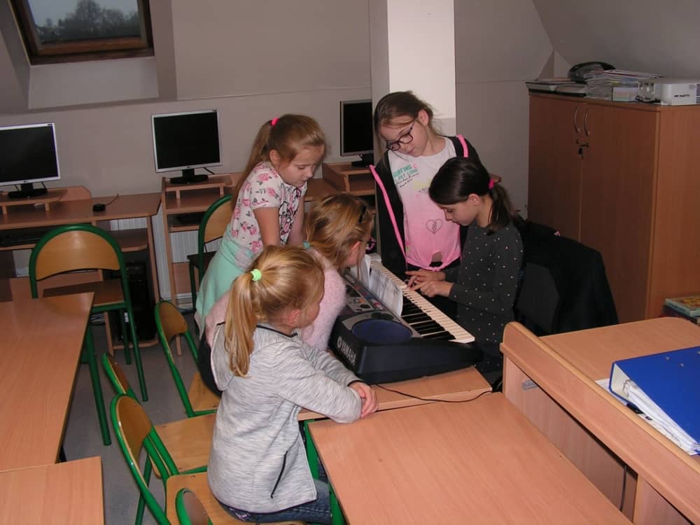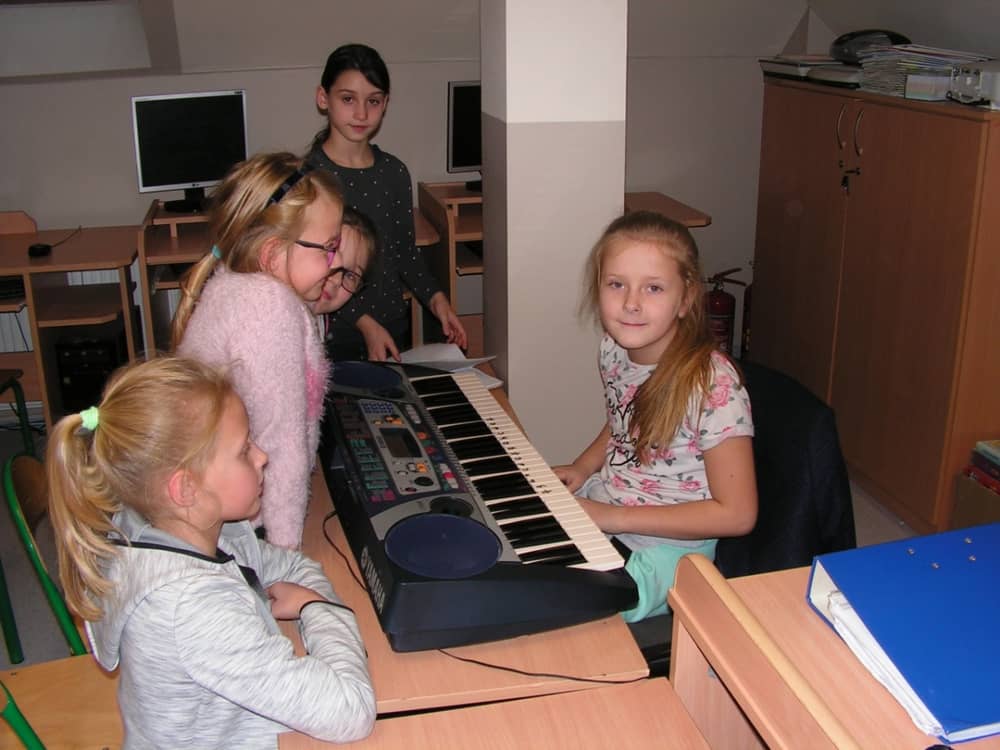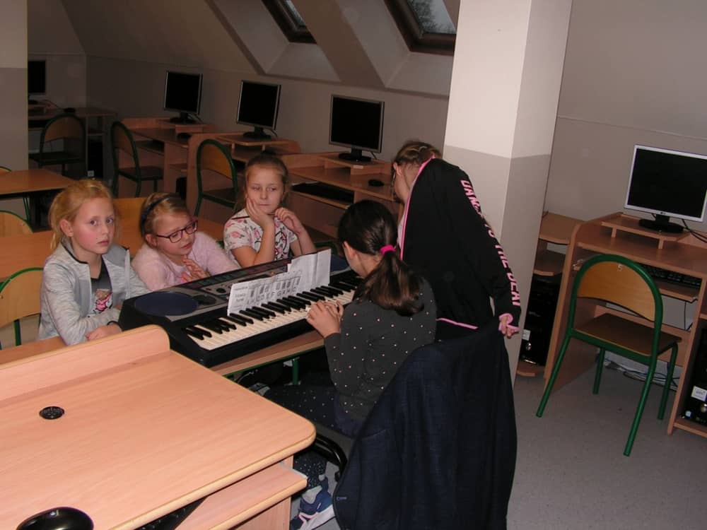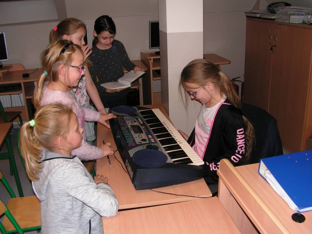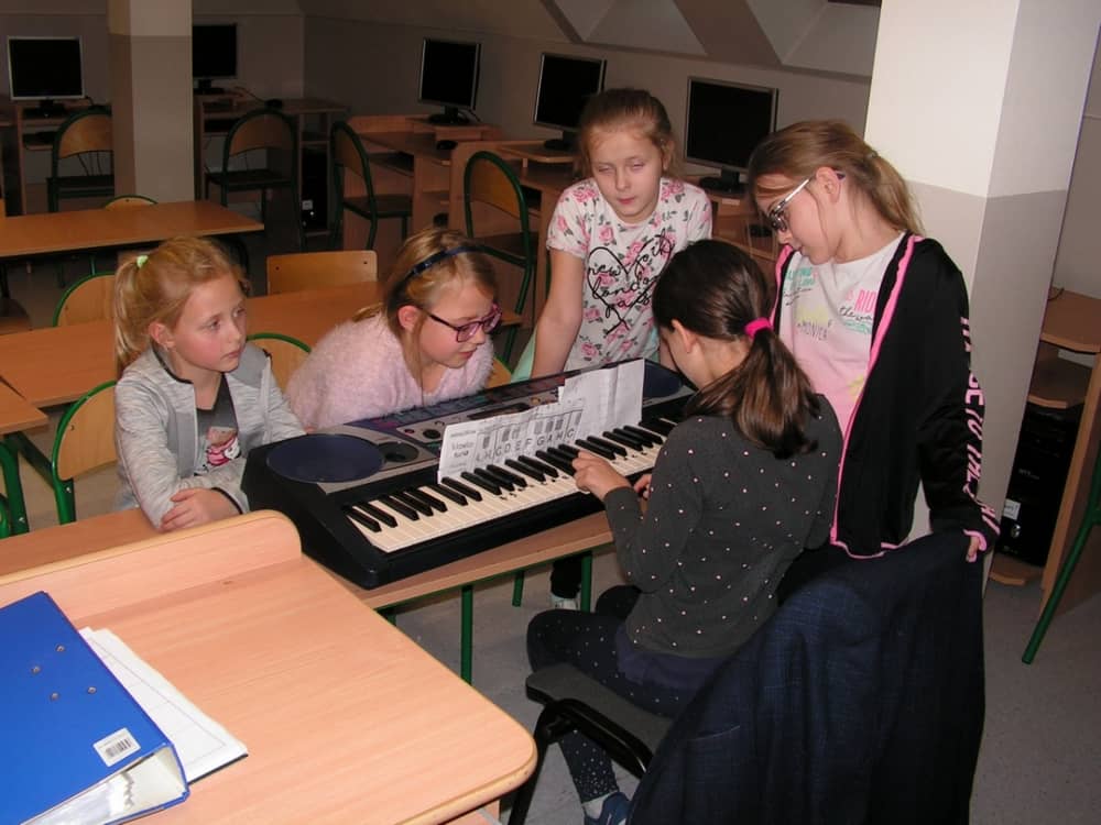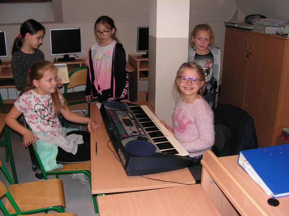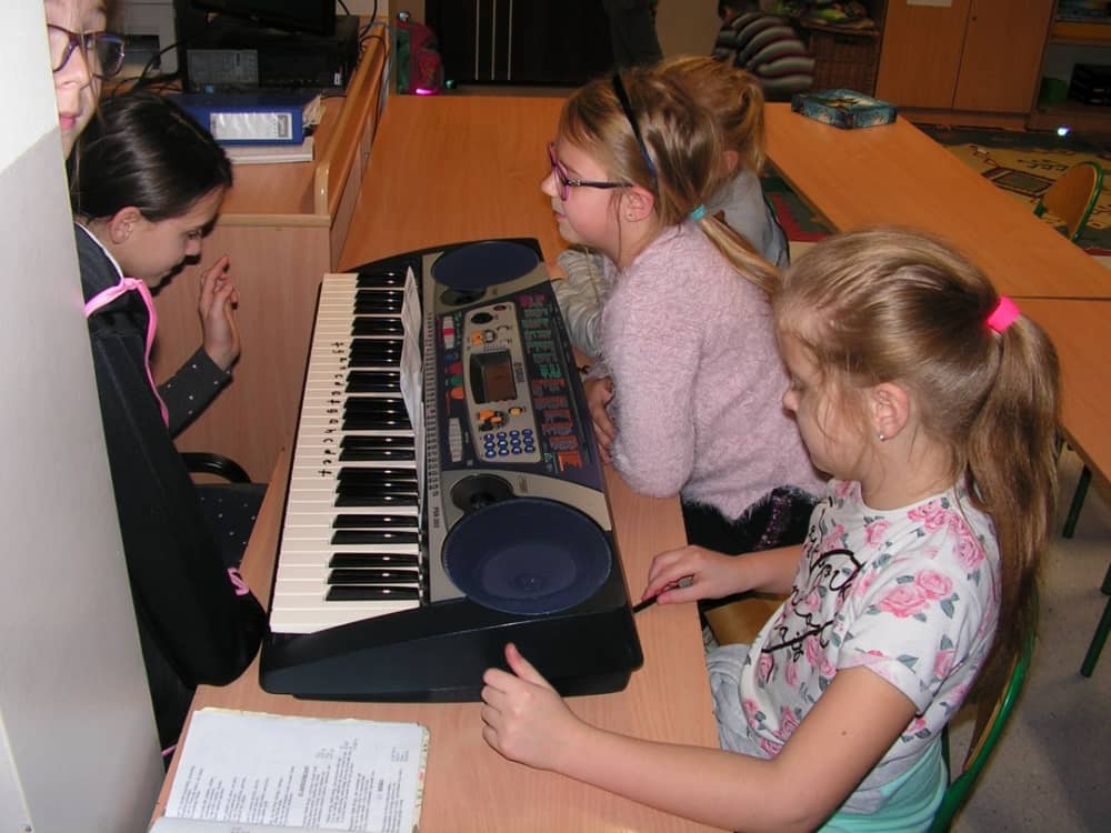 Na dzisiejszych zajęciach uczymy sie grać na keyboardzie melodie: "Groch z kapustą", "Do widzenia wam", "W morowanej piwnicy" oraz proste kolędy.