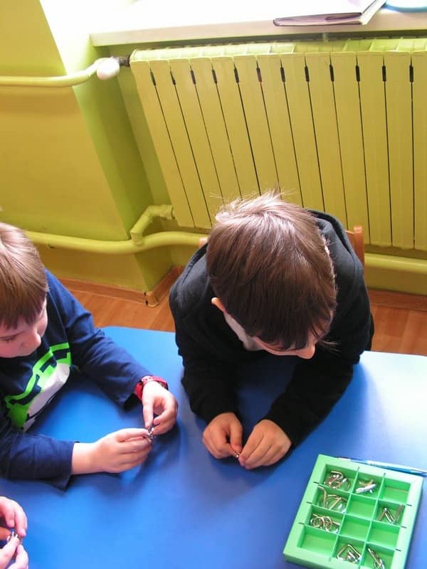 1 marca na zajęciach świetlicowych rozkładaliśmy i składaliśmy metalowe puzzle 3D. Pomimo ich prostego wygladu zadanie nie należało do łatwych. Ćwiczenia te wyrabiają myślenia logiczne i sprawność manualną.
