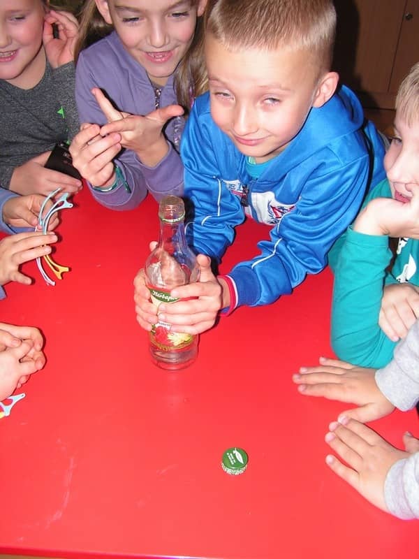 Jeśli położymy na szyjce butelki mała monetę, to po objęciu dłońmi tej butelki moneta będzie podskakiwać.