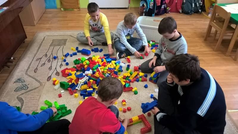 Układanie wspólnej budowli z klocków