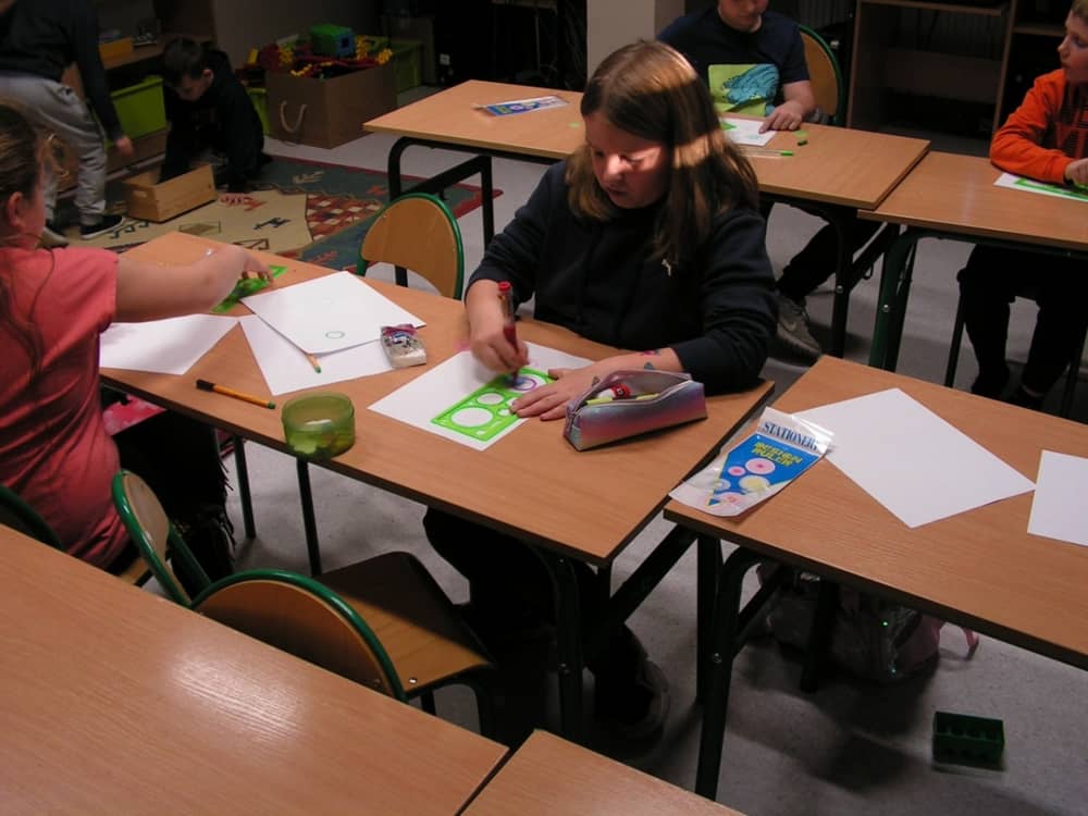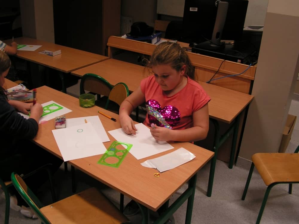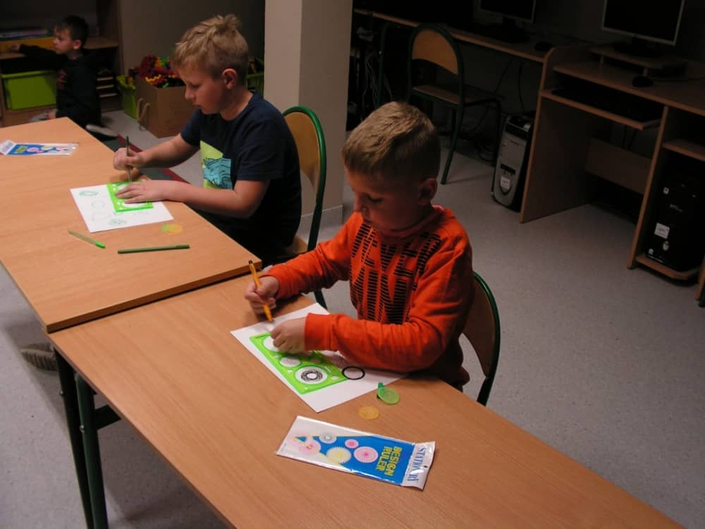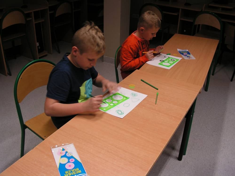 Spirograf – przyrząd do kreślenia spiral oraz skomplikowanych krzywych matematycznych jak hipotrochoida czy epicykloida. Dzieki życzliwości Rady Rodziców zakupiliśmy spirografy do świetlicy. Przy ich pomocy dzieci uczyły się rysować skomplikowane figury.