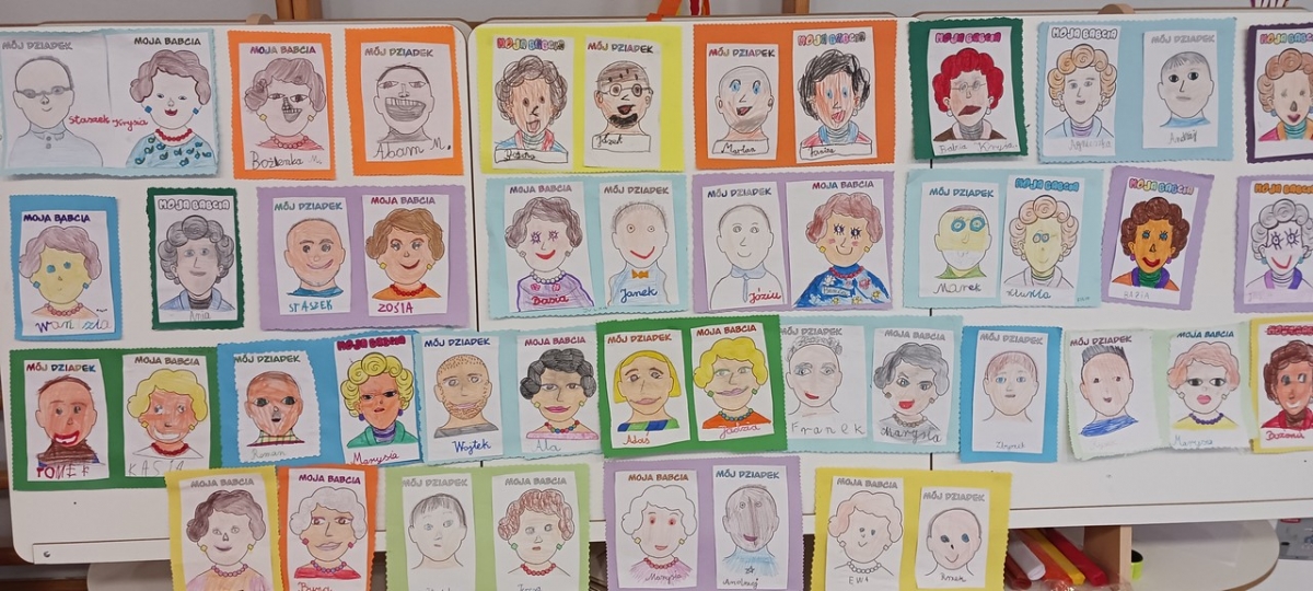 Z okazji Dnia Babci i Dziadka uczniowie na zajęciach w świetlicy wykonali piękne portrety swoich najbliższych.